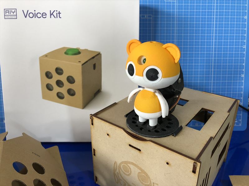 ・Google AIY projects Voice Kit(別売)によってべゼリーを動かすこともできます。フロントパネルの3つの穴にマイクアレイがぴったりはまります。