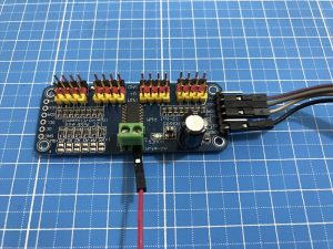 ・NXPのPWMコントローラPCA9685を搭載したサーボドライバボードです。ラズパイが苦手としているサーボの制御を担います。最大16個までサーボを接続することができますが、べゼリーでは3つだけつなぎます。