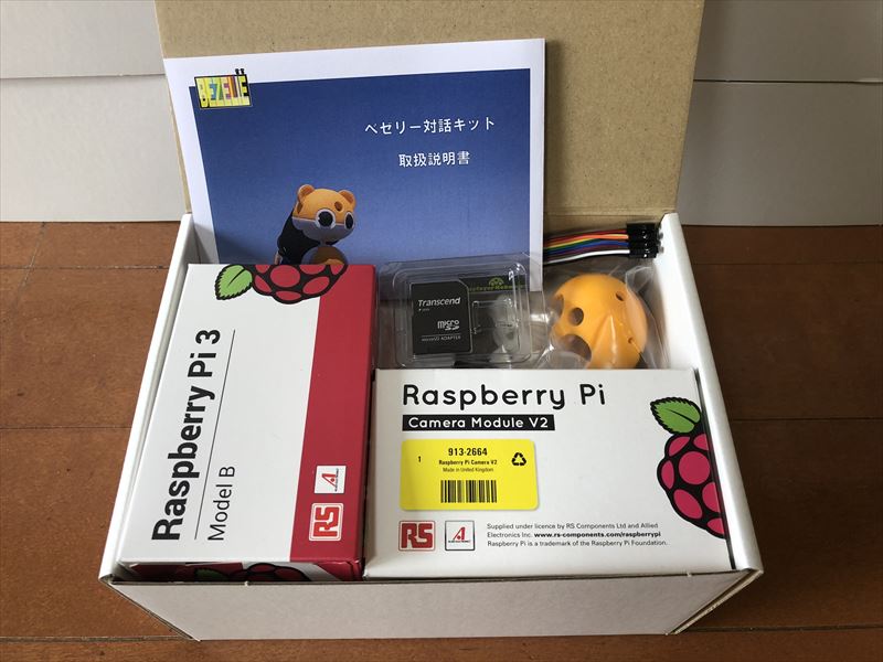 ・ラズパイのOSやプログラムを記録するメモリーです。すでにOSやプログラムが記録されていますので、ラズパイに刺すだけでベゼリーが動作します。ベゼリーに音声対話以外のことをやらせたり、ラズパイを勉強するためのサンプルプログラムも入っています。※下の写真はTranscend製ですが、出荷時期によってメーカーは異なります。