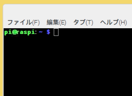 ・ドルマーク($)に続いて表示されている小さな四角が、コマンドプロンプトです。プロンプトとは「促す」という意味で、ラズパイから「早くコマンドいれてくださいよー」と催促されているわけです。キーボードから文字を打ち込むと、ここに表示されます。