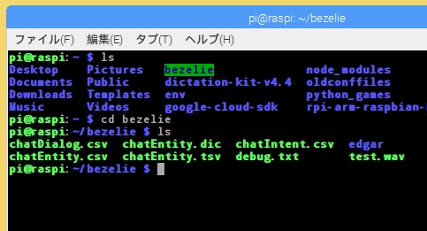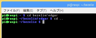 ・1つ上の階層、つまりbezelieディレクトリに上がることができましたね。「..(ピリオド2つ」は1つ上の階層を示すのです。