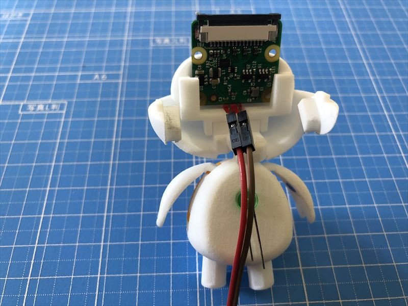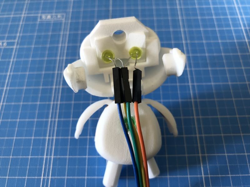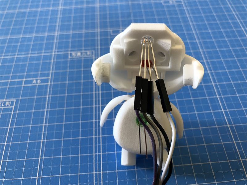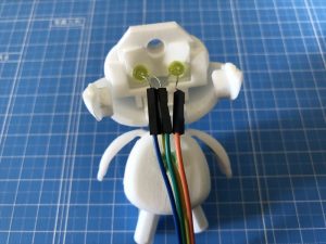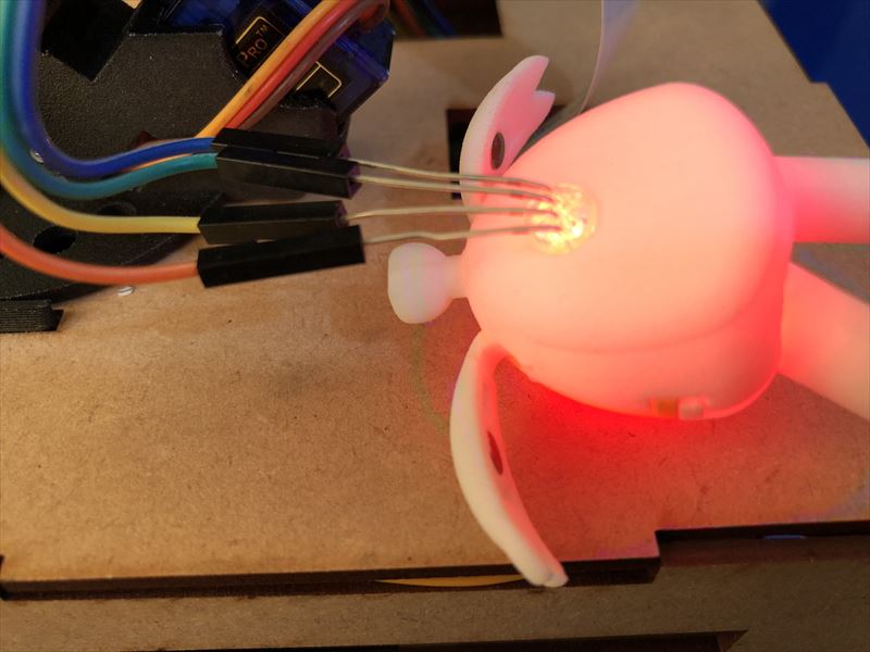 ・カメラの下に、下向きにLEDを刺すことで、口を光らせることができます。