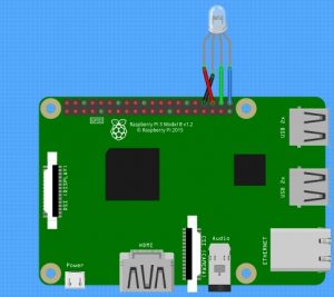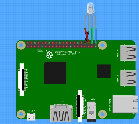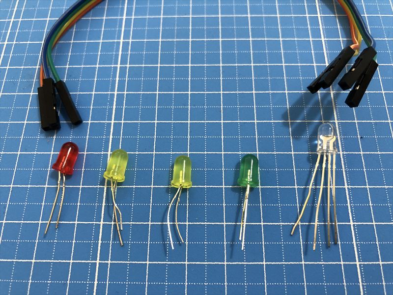 ・4本足のカラーLEDを使います。(LEDやラズパイを守るため、本当は抵抗をはさむべきですが、下図では省略してます)