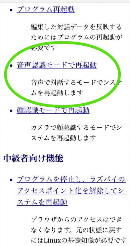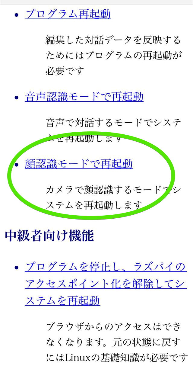 ・ブラウザからべゼリーに接続した後、「顔認識モードで再起動」を選んでください。20秒ぐらいして、べゼリーが「顔認識モード」と喋ったら成功です。