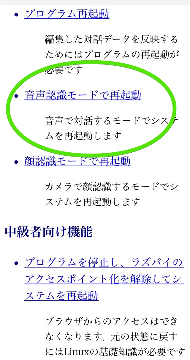 ・元に戻したい場合は、その上の「音声認識モードで再起動」を選んでください。