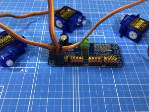 ・サーボドライバボードにはサーボを16個刺すことができますが、左端の3つに刺してください。