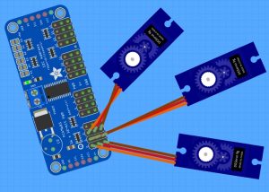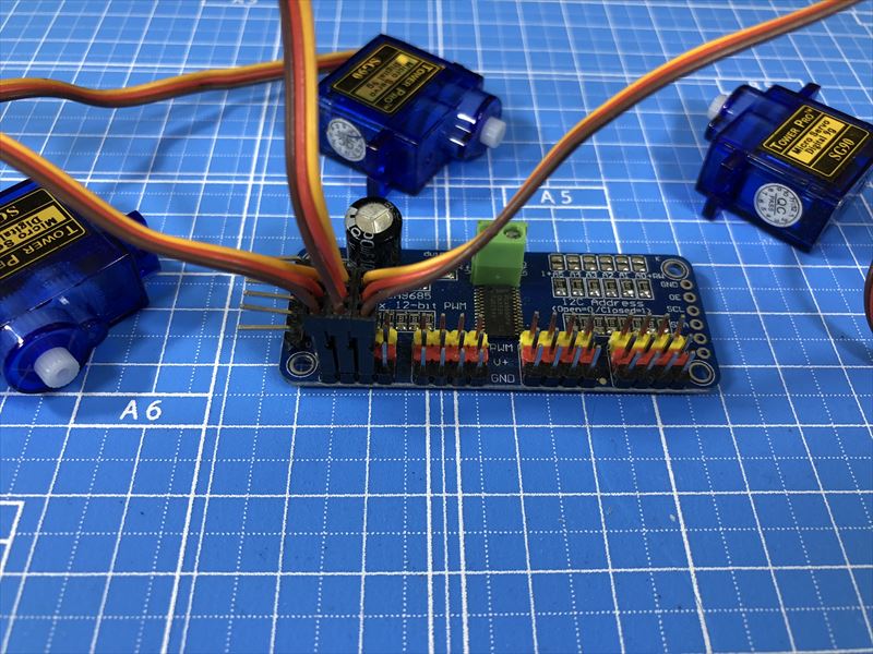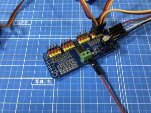 ・まず3つのサーボをサーボドライバボードに接続してください。