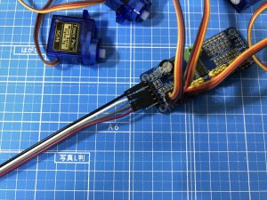 ・3つのサーボがキュイキュイと音を立てて動いたらセンタリング成功です。