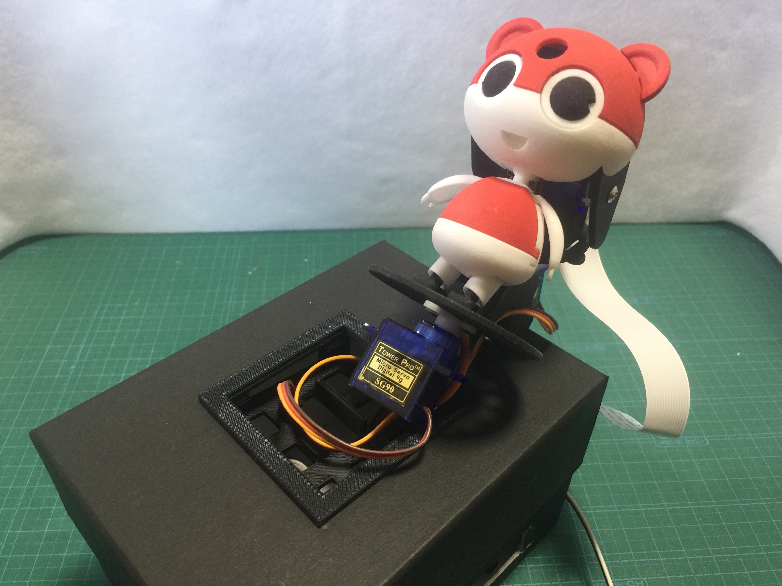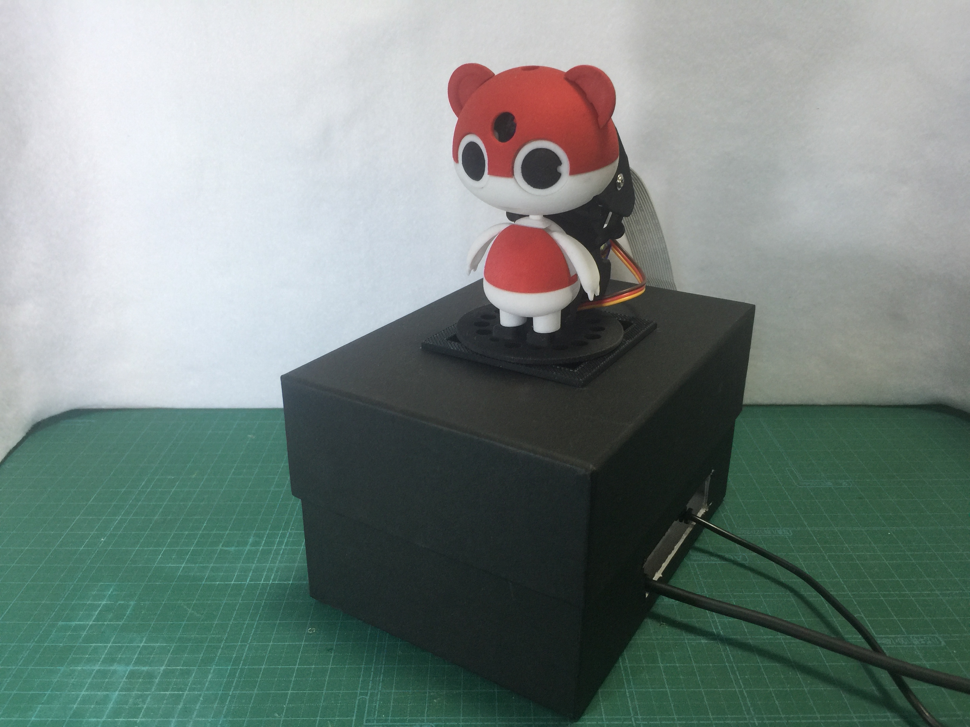 黒い台座の中には、ラズパイのほかサーボドライバーボードや電池ボックス、小型のスピーカーなどを収めることができます。