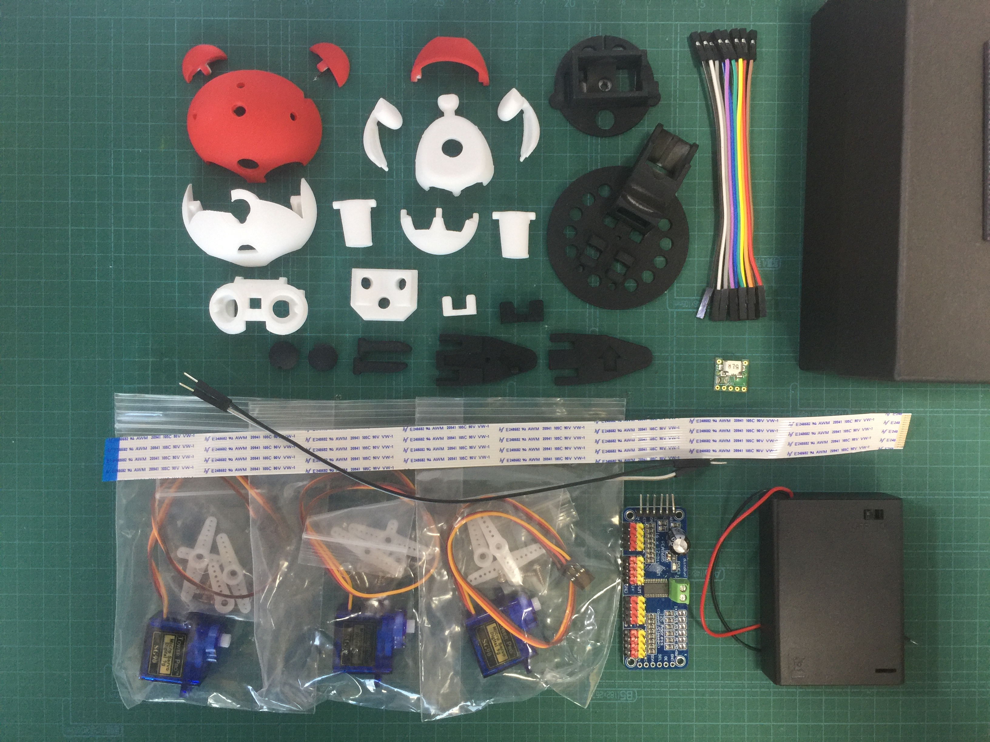 ・ベゼリー本体(Bezelie 7.1) ・サーボモータ☓3個 ・サーボドライバーボード ・USB電源コネクタ ・電池ボックス(単3☓3本用) ・ジャンパーワイヤ 短10本、長2本 ・フレキシブルフラットケーブル