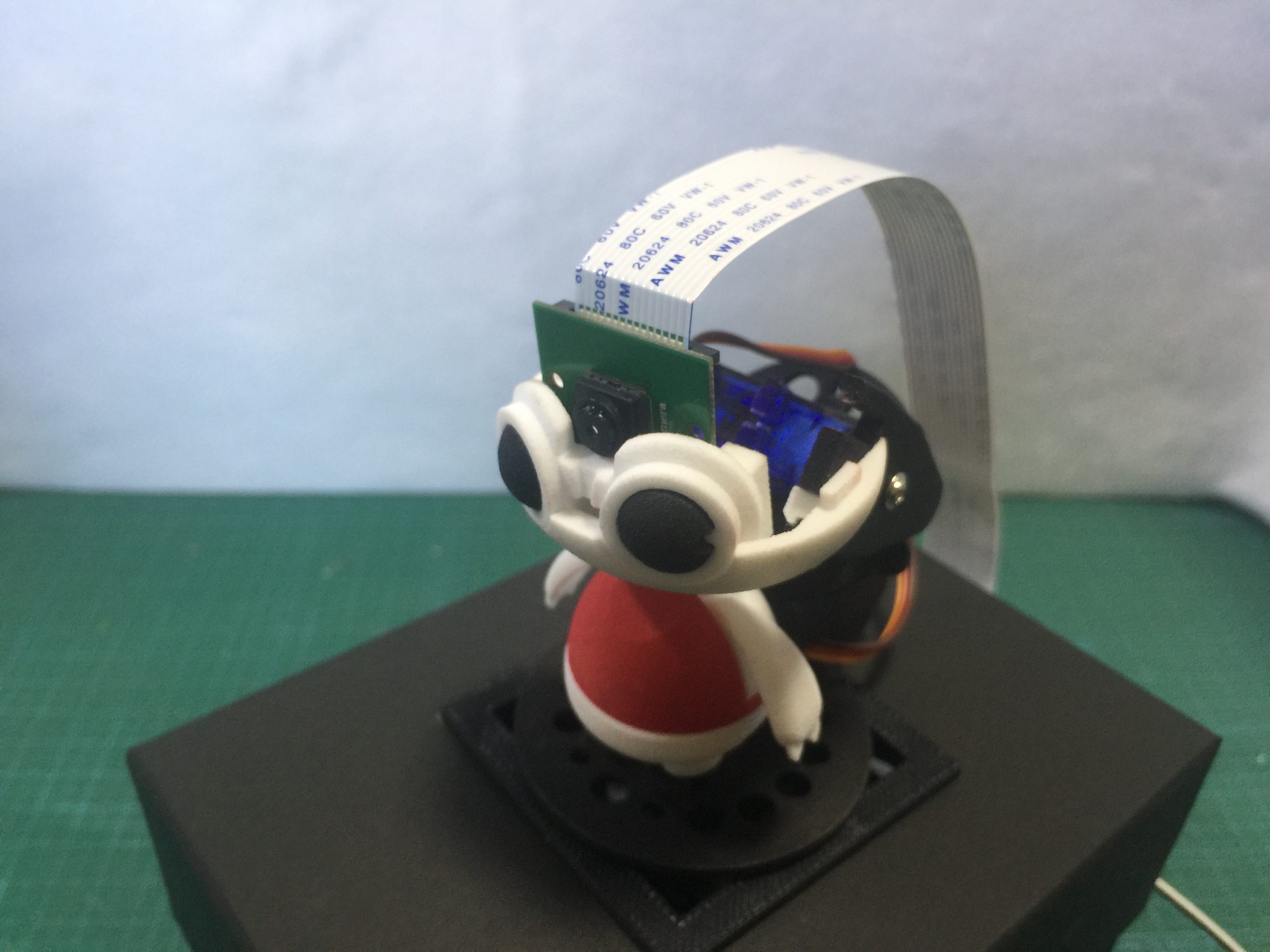 ラズパイは単体ではサーボモータの制御は苦手なのですが、付属のサーボドライバーボードによって、3個のサーボモータを簡単に接続し、制御することができます。 2016-12-08-09-11-54頭部にラズパイ専用カメラを内蔵することができます。長さ30cmのカメラケーブルも同梱しています。 2016-12-08-09-16-29 組み立て方法やサンプルプログラムはこのページで公開しているので、初心者でもすぐに動かすことができます。自分好みにちょっとアレンジを加えれば、オリジナルロボットの完成です。