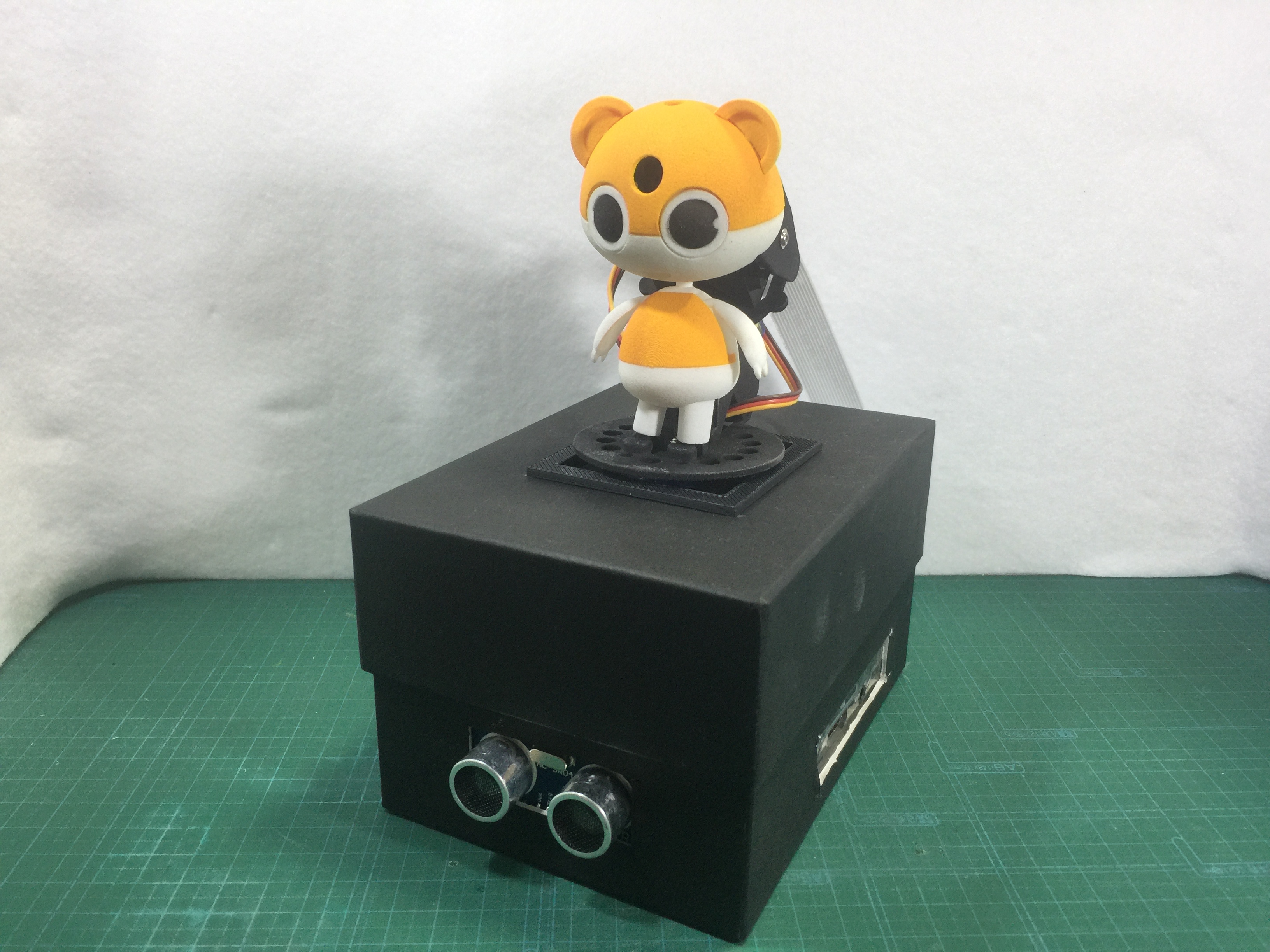 ここでは、超音波距離センサーを使って、人が近づいたら反応するロボットを作ります。