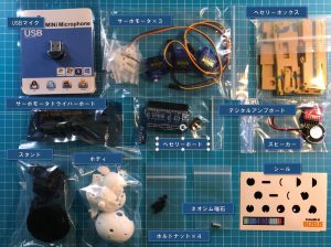「べゼリー・ラズパイ基本キット」を組み立てれば、「話しかけると、動いて返事するロボット」が作れます。かなり単純なことしかできませんが、単純なのでラズパイが初めてのひとにはぴったりのキットです。