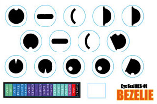 ベゼリーの目に貼って表情を変えるシールと、ベゼボードに貼って端子の位置を分かりやすくするシールです。