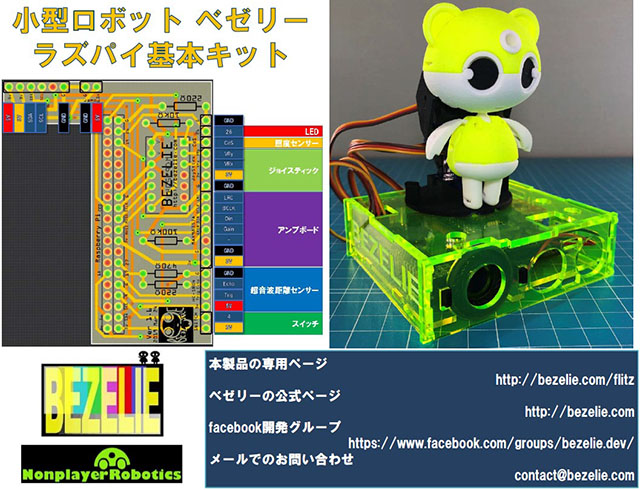 NXP社のPWMコントローラPCA9685を搭載したサーボドライバボードです。ラズパイが苦手としているサーボの制御を担います。最大16個までサーボを接続することができますが、べゼリーでは3つだけつなぎます。