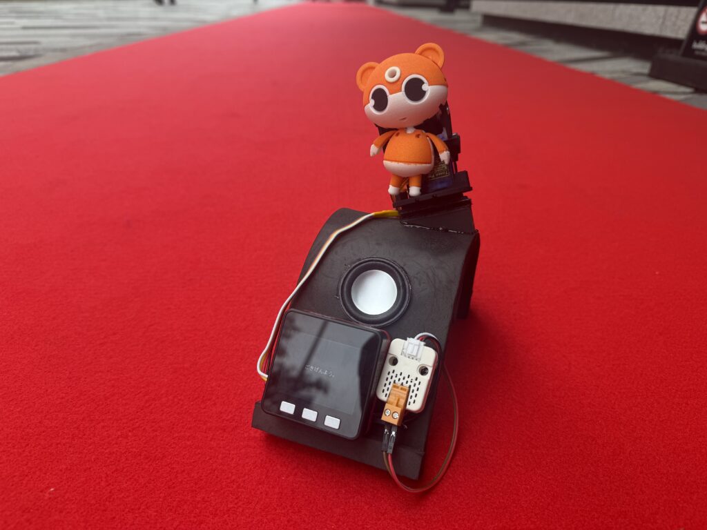 3つのボタン操作で動くようにしたかったので、メイン機にはM5Stack BASICを選びました。本体の1Wスピーカーでは騒がしい会場では小さすぎるのでAudio Amp Unitによって外部スピーカーから出力しています。