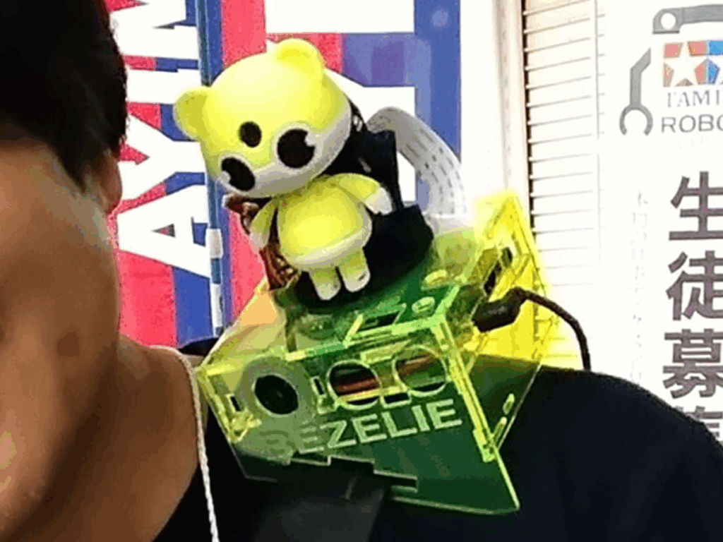 「肩のりベゼリー」肩の上に乗せるベゼリーです。犬の飼い主が散歩中に公園で出会った他の飼い主と自然に友達になってしまうように、べゼリーを肩に乗せていると、初対面の人ともすぐに仲良くなることができます。